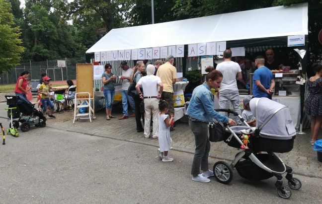 Hinter dem Freundeskreis Asyl liegen zwei tolle Tage Schapfenfest. An unserem Stand kamen wir mit zahlreichen Besuchern ins Gespräch, servierten Falafel, Baklava und Co und sorgten mit unserem Kugelglücksspiel für jede Menge Spaß und Lacher. Bei all dem Vergnügen wanderten auch immer wieder Münzen und Scheine in unser Spendenkässchen. Ein herzliches Dankeschön an alle Besucher und Spender. Wir haben uns sehr gefreut – mit den Geldern unterstützen Sie unsere Angebote wie zum Beispiel den Deutschunterricht.